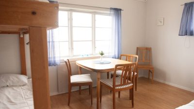 Vandrarhemsrum i ”Längan” med WC och dusch. Rummen finns i tre olika varianter, enkelrum, dubbelrum och flerbäddsrum med 4 bäddar. Ett gemensamt kök och städförråd finns för dem som bor i huset. Totalt finns det finns fyra dubbelrum och 11 fyrbäddsrum och två rum med sex bäddar. Sammanlagt finns 64 bäddar i längan.